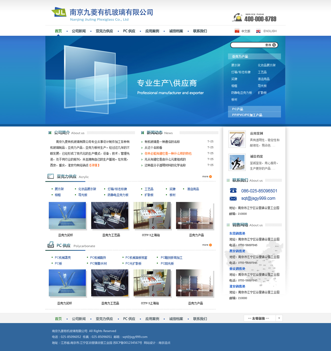 南京九菱有機(jī)玻璃有限公司,專業(yè)從事設(shè)計(jì)制作加工各種有機(jī)玻璃(PMMA)制品,PC制品,等塑料板的加工以及透明亞克力PMMA板,乳白壓克力PMMA板,彩色壓克力板PMMA,PC耐力板,PC薄膜,PC片材,PC磨砂板,PC顆粒板的生產(chǎn),擁有自己的生產(chǎn)基地,已經(jīng)形成了現(xiàn)代化的生產(chǎn),設(shè)計(jì),加工一條龍服務(wù)的模式,在東莞,西安,重慶,淮安均有銷售點(diǎn)。公司擁有先進(jìn)的激光雕刻機(jī),CNC精密雕刻機(jī)、熱彎?rùn)C(jī),進(jìn)口數(shù)控沖床、折彎?rùn)C(jī)、裁切機(jī)、銑邊機(jī)、打板機(jī)、恒溫恒濕干燥設(shè)備等專業(yè)的加工設(shè)備,先進(jìn)的加工工藝和豐富的加工經(jīng)驗(yàn)致力PC(聚碳酸酯),PMMA(亞克力)二次成型加工及精密切割,根據(jù)客戶的設(shè)計(jì)圖紙,選用優(yōu)質(zhì)板材,進(jìn)行切割、雕刻、鉆孔、折彎、銑槽、拋光、粘接、吸塑、吹塑、熱壓定型、印刷、噴沙、鍍膜等加工,保持特定的角度和形狀,滿足客戶的要求。
